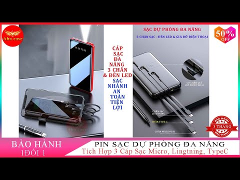 Pin Sạc Dự Phòng Đa Năng Màn hình Đèn LED, Tích Hợp 3 Cáp Sạc Micro, Lin...